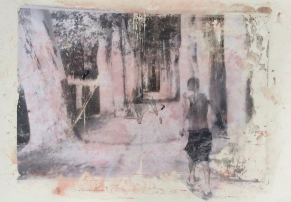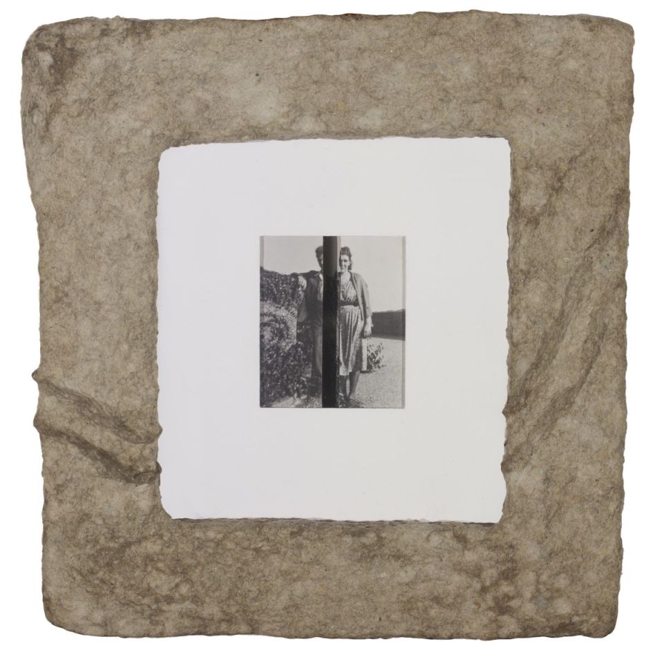 Tranker harmadik munkája a kollekcióban az előző két eljárást ötvözi. Kollázs, amely szétvagdosott amatőr fotókat is tartalmaz, egyúttal tárgy, egyfajta relief, és anyaga a szigetről származik, ott talált fakéregtől az üvegszilánkokig mindenféle emléktöredék. Az ezekből összeálló motívum szintén a helyszínhez kötődik, az egyik nyaraló teraszkorlátjának rácsozatát idézi. A fotós és a tárgyi múltszilánkokból tevődik össze a jelen - legalábbis egy műalkotás erejéig.