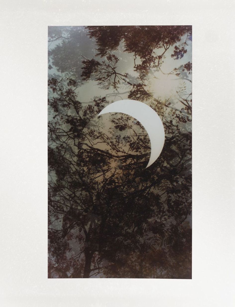 Zagyvai Sári Holdfogyatkozás című fotómontázsát 2019-ben a művésztelep résztvevői által közösen megélt égijelenség ihlette. A szigetlakók az egyik partról a másikra vonultak át éjszaka, hogy jobban lássák az égitestek játékát. A digitális montázst a művész a képernyőről úgy nagyította le, hogy a képernyő került a negatív helyére a nagyítógépbe. Így hibrid kép jött létre analóg és digitális rétegekből. A keretezést pedig úgy oldotta meg, hogy a kép háttere tükör, amelyben ugyanúgy nem látjuk magunkat, ahogyan holdfogyatkozáskor a Föld a Nap és a Hold közé ékelődik.