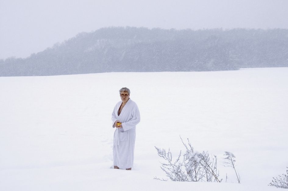 A vizuális grammatika kiaknázása szempontjából hasonló eredmény keletkezett korábban is, az 1986-os Irány, X1, X2 című képek esetében, bár ott első pillantásra az ismert mester (Mapplethrope) előtti hódolatra gyanakszunk, mégis, ha a címre helyezzük a hangsúlyt, rá kell jönnünk, hogy az amerikai fotós beállítását olyan ismertté tevő karmozdulatot formai játékként használja Csontó, de lehet, hogy véletlen az egybeesés, ahogyan a képen látható raszterpontos nagyítás alapja sem a Mapplethorpe-fotó, hanem valamilyen képes magazinból származhat a részlet.6 A művészettörténeti közhelyek ilyen zavarba ejtően könnyed (tárházból variálható) kezelését tapasztaljuk a 2008-as Közös nevező egészen festményszerű fotóanyagában is, ahol a hétköznapi, utcán elkapott jelentek ikonográfiai párhuzamokkal vagy ismert művek montírozásával keverednek, a tartalmi összefüggés azonban homályban marad. Hasonlóan a Reggeli a szabadban (2010) egészen szabad fordításához, amelyen minden összetevő Manet képének épp az ellenkezőjévé válik: nem nyáron, hanem télen, nem füvön, hanem hóban, nem nő, hanem férfi, nem ülve, hanem állva, nem meztelen, hanem köntösben, és a sor bizonyára folytatható. A vizuális memóriánk tökéletes próbatétele zajlik, hogy azután ugyanebben az évben a képek tárházának fojtogató hatását rögzítse Csontó mintegy metatextusként egy önarcképben a Nézhető és nézhetetlen (2010) című munkán, amelyen műfaji kategória ide vagy oda, épp a művész arca nem látszódik a Taschen művészeti albumának szorításában. A képözön, még az éppen kanonizálódó kortárs alkotások sokasága is, bénító hatással bír, elbizonytalanítja a látás hatékonyságát.