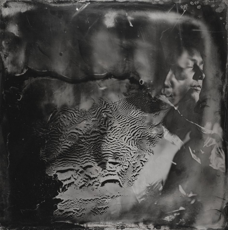 Szabó Andrea egy kissé eltérő perspektívát képvisel: az eljárás történetiségével foglalkozik, viszont rengeteget kísérletezik a médiummal. Festett már akrillal a nedves kollódiumos lemezek hátoldalára, illetve sok képén használ mesterséges intelligenciát. Megújított archaikus és digitális eljárásokat bátran ötvöz, sokszor jelennek meg üveglemezein, cianotípiáin mesterséges intelligenciával alkotott figurák. Emellett az eljárás gyökereit jelentő műfajokhoz is visszanyúl: csendéleteket és portrékat is készít. Több kiállításon megjelent már kollódiumos képeivel: Galyasi Géza Attilával 2022-ben az ArtBázisban állított ki, de a fentebb említett Gálos Lászlóval is alkotott már együtt.29
