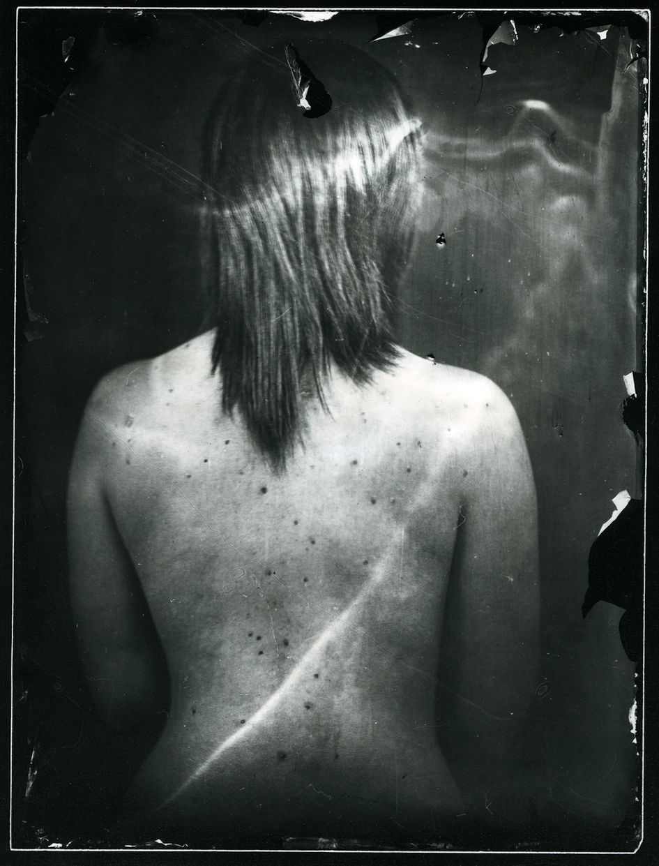 Gálos László szintén középgenerációs alkotó, aki polgári szakmája szerint boncmester, de az elmúlt évtizedben a nedves kollódiumos eljárással dolgozó közösségnek is meghatározó tagja lett. Számos önálló kiállítása volt itthon és külföldön is, a legkülönbözőbb koncepciók mentén, de a technikaválasztása egységes: szinte kizárólag nedves kollódiumra dolgozik. Tudatosan építi pályáját, számos pályázattal ért el sikereket, többször megnyerte az NKA alkotói ösztöndíját, rezidenciaprogramon is részt vett a Kimonos Art Centerben26. A fotográfián belül elsősorban az aktfotózás és az emberi test foglalkoztatja, ebben a kategóriában többször díjazott alkotó. Foglalkozik a kollódiumos fotók installációs oldalú újraértelmezésével is, előadóművészeti kollaborációkban is részt vesz. Különösen a kortárs tánc és a fotóhoz köthető performanszok érdeklik27, az L1 Egyesület tagja28.
