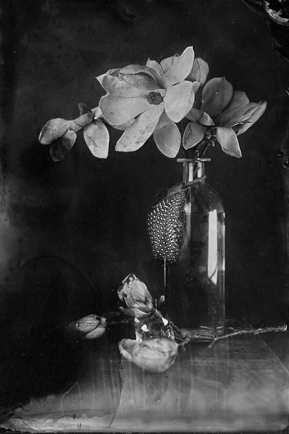Venczel Attila alkotóként, oktatóként és kutatóként is kifejezetten aktív. Az Artphoto Galéria és a Dorsy Galéria képviseli Magyarországon, előbbi 2017-ben egyéni tárlatot is rendezett kollódiumos képeiből20. Elsősorban csendéleteket készít, sokat foglalkozik a tudomány és a művészet viszonyával, ami szintén a médium által történetileg kevésbé feldolgozott téma. A kiállításmegnyitó népszerűsége arról is árulkodik, hogy sokan érdeklődnek az egyedi objektként megjelenő archaikus fotók iránt. MMA-ösztöndíjban és kutatói tevékenységével NKA alkotói ösztöndíjban is részesült21, képei magángyűjtőknél és a Magyar Nemzeti Múzeumban is megtalálhatók. Aktívan tart workshopokat, ezeknek köszönhetően a tanítványai is szinte külön alkotócsoportot alkotnak, saját publikálású kiadványt is készített nedveskollódium-témakörben. Emellett tanítványaként és tanáraként is említheti az idén tíz éve elhunyt Kerekes Gábort, aki az archaikus eljárások kortárs művészeti felhasználásának egyik magyar úttörőjeként szintén sokakat oktatott, és nagyon sokszínű, gazdag életművet hagyott maga után22. Utolsó alkotói időszakában az ambrotípiák készítésére fókuszált, ezzel a technikával is maradandót alkotva23. 2024-ben emlékkiállítás nyílt műveiből, melyek közül már van, ami a Ludwig Múzeum gyűjteményét gazdagítja.