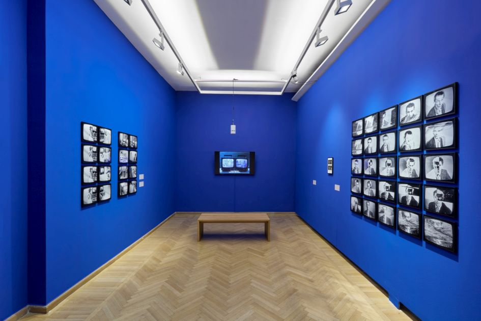 A földszinti egység harmadik (kék színű) térrésze az emigrációt követő első évben született alkotásoknak, azon belül is a Seins Fictioncímű műnek és a hozzá kapcsolódó kísérleti munkáknak lett dedikálva. Hámos 1979-83 között a berlini Deutsche Filmakademie hallgatója volt. A Seins Fiction1980-ban, az emigrációt követően - Hámos első munkájaként - gyakorlatilag a disszidálás megélésének interpretációját jelenti. A Seins Fictioneredetileg egy kétcsatornás videóinstalláció, amelynek a Mai Manó Ház kiállításán a videódokumentációja látható. A két képernyőn párhuzamosan futó két vizuális szekvencia a valóság média általi megkettőzöttségét emeli ki, amellyel Hámos a tények és fikciók együttes jelenlétét kutatja. A cím a német seinlétigét a science fictionkontextusába helyezve a „létezés fikciójára” utal - ezt olyan vizuális anyagok egymás mellé helyezésével példázza, mint a nyugati és keleti tévéhíradó párhuzamos (ellentétes) valósága.