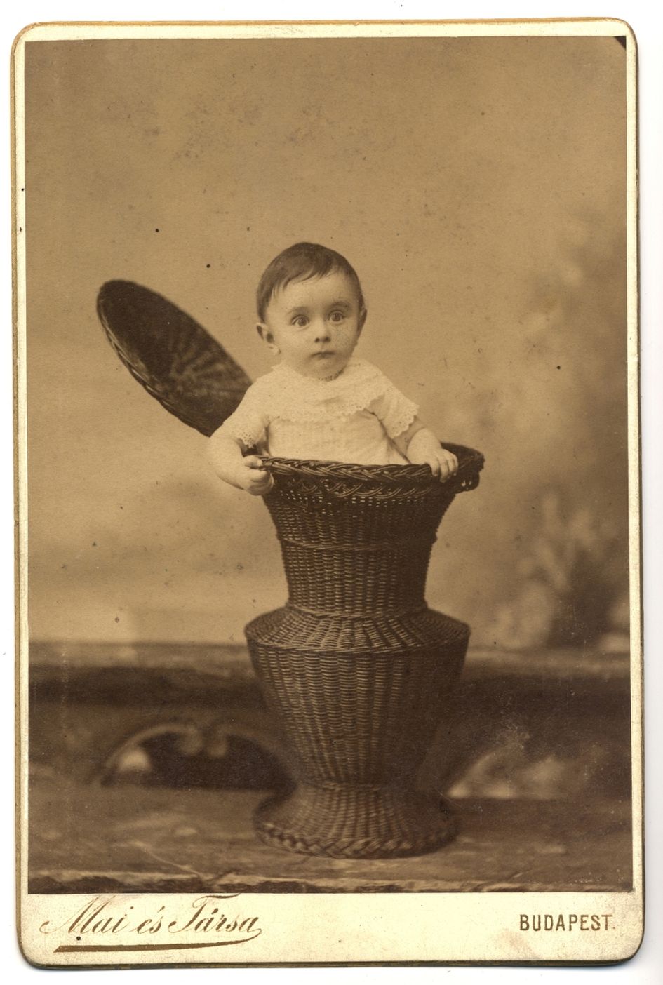 Néhány fészekben ábrázolt gyerekkép a fényképészek különös fantáziájára utal vissza, erősítve azt a feltevést, hogy bizonyára mindegyiknek megvolt a maga képzőművészeti, esetleg külföldi fényképészeti, később levelezőlapon is terjedő mintája. A magyar anyagban ilyen típusú ábrázolással eddig nem nagyon találkoztunk, és az ismert fényképeket kedvesen viccelődő attitűdként kezeltük. Most bemutatásra kerül a 19. század végéről Oroszy Lajos (Nagybecskerek), Schmidt Ede (Budapest), Renner József (Zenta), Fehér Flóris (Békéscsaba) munkája. (2‒5. sz. kép) Mai (Manó) és Társa nem mindennapi fonott kosárba ültette modelljét, hasonlóképpen egy különös váza szolgál fészekként egy másik képen.6 Ez utóbbi kép készítőjét nem ismerjük, már nem jelezte nevét a kép hátlapján. (6‒7. sz. kép)