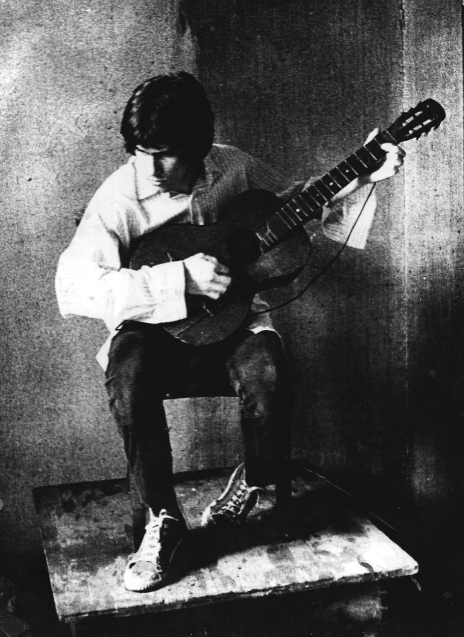 Judit megjegyezte, hogy bár nagyon korán ő is tudatosan készült a művészpályára, mint első gyereket, aki közel hat évvel volt idősebb öccsénél, még szigorúan tiltotta édesapjuk a Kisképzőtől, ezzel szemben Mihály megkezdhette ott a tanulmányait. Simon barátja Szabó Mihály foglalkozott a gyerekekkel, Juditnak szakirodalmat adott a főiskolai felvételihez, Mihályt pedig fényképezni tanította. Szabó Mihály nem mellesleg Simon festményeinek műtárgyfotósa, és a Magyar Műszaki és Közlekedési Múzeum fényképész munkatársa volt. A Kisképző fotó szakosztályán Mihály tanárai a kiváló Langer Klára (1912‒1973) és Tőry Klára voltak. Itt érettségizett 1971-ben. Tőry Klára szerint a kilenc fős csoportból Sarkantyú Mihály volt az egyik legkiválóbb tanulója, nem véletlenül és érdemtelenül, hiszem maga is azt írta: „A fotózás a lételemem, középiskolás éveimtől máig készítem amatőrfilmjeimet, a »hivatásosok« mellett is. Fotóim »belső« ready made-k, amolyan érzelmi talált tárgyak. Hangulatok, meglebegtetett furcsa pillanatok: életem és világunk törmelékei. Talán azért építem őket szívesen sorozattá ‒ mondatok képi kimondásával kísérletezem.”10 Osztálytársai közül legszorosabb barátai Ridovics Péter és a grafikusok közül Nagy László költő fia Nagy András, valamint Nagy Péter, Nagyváry László, Rásó András voltak, testvére Judit visszaemlékezése szerint. Akikkel később az 1980-as években is tartották a kapcsolatot, azok Basics Beatrix szerint, Nagy András, Ridovics Péter, Buda István és Nyáry István voltak. A mellékelt képek mind gimnáziumi osztálytársait ábrázolják: Nagy Pétert, Snepp Sándort, Rásó Andrást, valamint a családtag Friedrich Ádámot, aki az Állami Hangverseny Zenekar kürtöse volt. Snepp és Friedrich Sarkantyu Simon műtermében pózoltak, ahol a hatalmas ablakok, rendkívül jó fényviszonyokat jelentettek, és persze a felszereltség is adott volt, a dobogó, a paraván, a gitár, míg a kürt a zenekaré (ÁHZ) volt. Ezek a képek, valamint a Wesselényi utcai fotók, mind a gimnáziumi idő alatt készültek (a házakat azóta felújították).11 Az érettségit megelőző nyáron, 1970-ben készítette Zsennyén azokat a képeket, amelyeken Huszárik Zoltán filmjének, a Színbádnak a forgatását fényképezte. Összesen két forgatási nap volt a zsennyei kastélykert hatalmas parkjában, és ekkor kapta lencsevégre a színészóriás Latinovits Zoltánt.12 Képeit, megkockáztatom, hogy akaratán kívül is, a rokokó képalkotásának voyeur pozíciójából készítette (ebből a nézőpontból forgatták a filmet is), mintha egy Fragonard-festmény átiratát látnánk magunk előtt. A forgatási szünetébe nyerünk bepillantást, a táncjelenetet megszakítva, ahol Latinovitsot a háttal álló Huszárik Zoltán éppen instruálja.