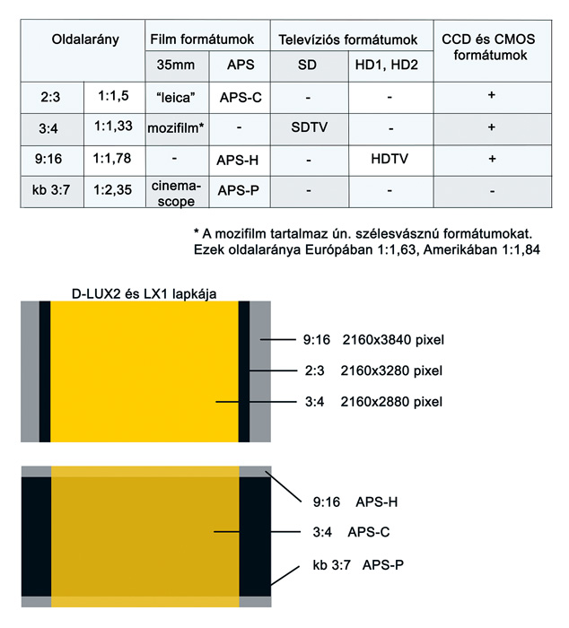 Ami a 9/16-os HD- formátumot (1:1,78 oldalarányú) illeti, a nagyra hivatott – ám rövid életű – APS-rendszer már megpróbálta kiindulási formátumként bevezetni, mint ahogy a közelmúltban a Leica D-LUX2-es és a Panasonic LUMIX DMC-LX1-es modelljeiben is megjelent a 9/16-os formátumú képérzékelő lapka, a korábbi formátumok (1:1,33, 1:1,5) bármelyikének kiolvashatóságával. Ez azt jelenti, hogy visszaérkeztünk az új televíziós (és természetesen videós) kép formátumához a 9/16-hoz, azaz az 1:1,78 oldalarányú kép megjelent a digitális fényképezés lapkaformátumai között.