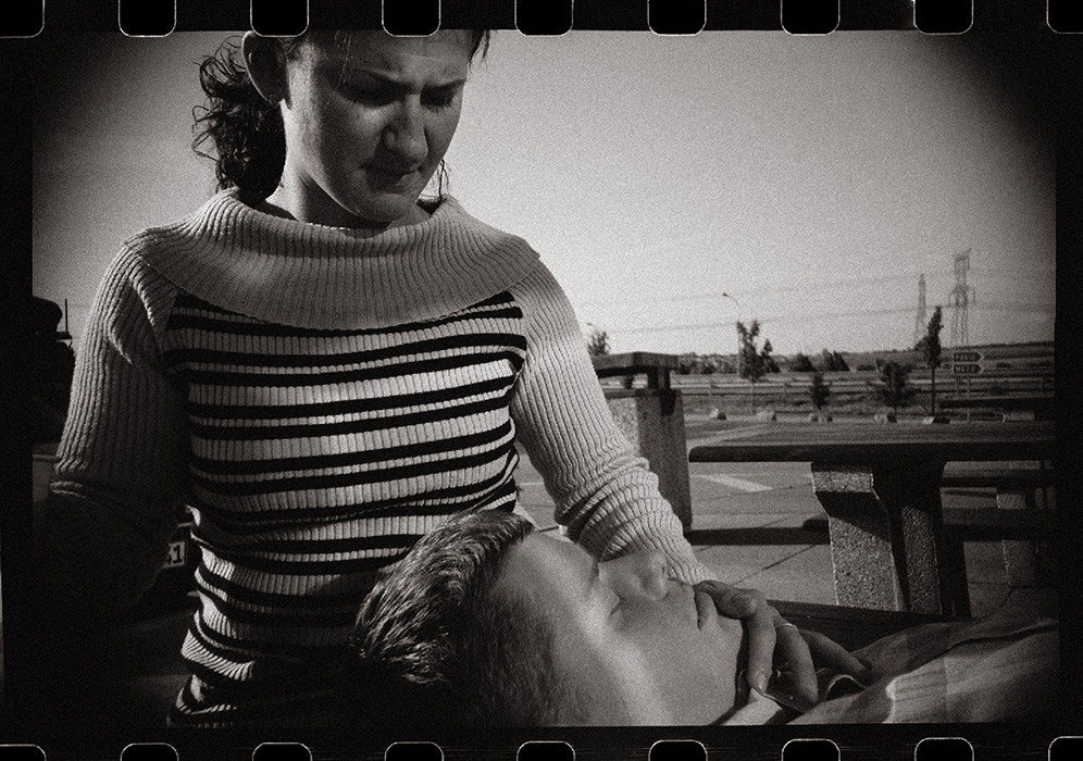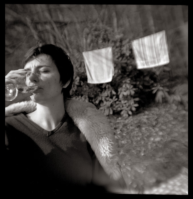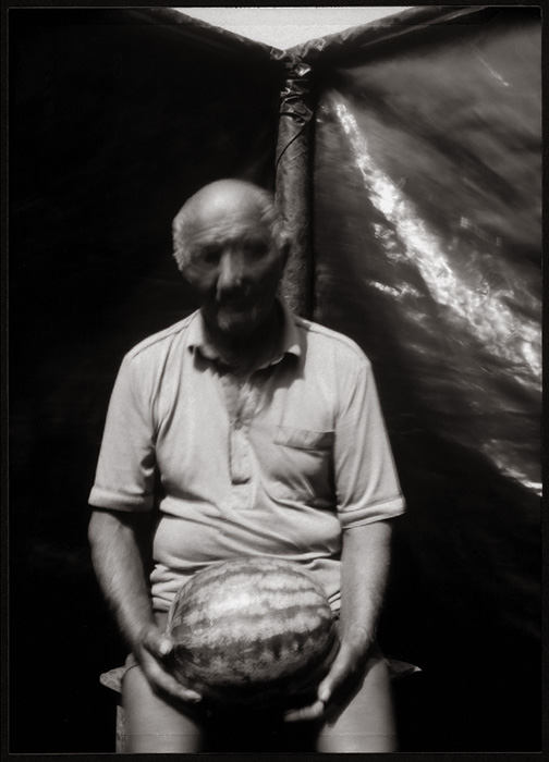 Major Lajos a technika csábításának ellenállva – miközben ugyanúgy otthon van az Acrobat Reader 6.0 Professional vagy az Adobe Illustrator használatában, mint a 18x24 cm-es fagépe világában – , állhatatosan hű marad a fotográfia ősi mágiájához. Befogadja az esetlegességeket, együtt mozdul a világgal. Hogy mit lát egy Ljubityel, egy Lomo vagy az a konzervdoboz, amivel éppen fotózik? Lehet tudni, hogy nem az eszköz, hanem a mögötte lévő ember a fontos. Bevallom, mindig elbűvölt, hogy Major Lajos úgy fényképez, hogy nem néz bele a keresőbe. Tulajdonképpen azt mondhatjuk, hogy olyan, mintha bekötött szemmel, hátrafelé nyilazna a lóról, bal kézzel. Vajon mit tesznek hozzá az érzékeink, az érzékszerveink, a megérzéseink a képkészítéshez? Mikortól lehet azt mondani, hogy képes valami reprezentálni valamit? Újabban azon az állásponton vagyok, hogy ezek a kérdések összefutnak valahol. Kata portréján ténylegesen tetten érhető ez. Igaz ugyan, hogy a feje nem látszik a képen. Arra, hogy hogy mennyiben Kata, valamint, hogy mennyiben portré, csak hamis válaszokat kaphatnánk. Talán a kérdés nincs jól feltéve. Csakúgy, mint Patrick Toszni portréi(2) kapcsán, aki a felismerhetetlenségig éltelenítette el az arcképeket, s ezzel a portré egyik sajátságos funkcióját kívánta elfelejtetni velünk. Ezt kíséri Toszni képein a Braille-írással feltüntetett információ, amelyet két dimenzióban jelenít meg, fotótechnikája segítségével. Mire mondhatjuk tehát, hogy valami reprezentál valamit? Példának okáért, egy portré reprezentálja magát az embert?