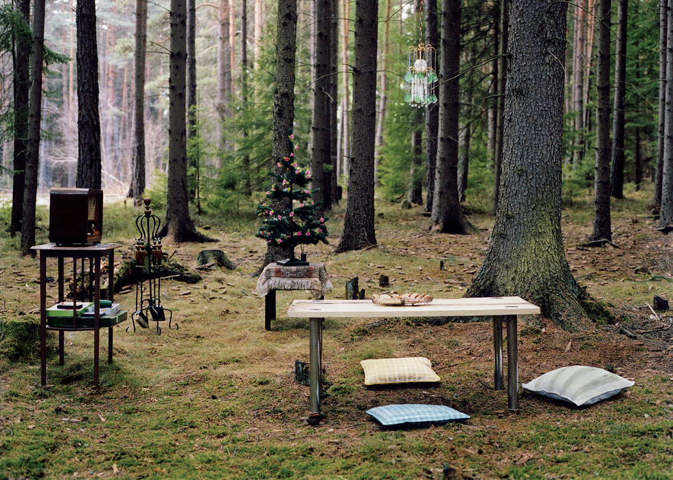 Laura Samaraweerová eltér az eddig említett kiállítóktól, ő a megörökített látványt saját kézzel kialakító, megépítő fotós vonulathoz köthető. Képein a természetes és mesterséges, az ember nélküli és az ember beavatkozása nyomán létrejött problémaköreit hozza játékba. S e szóhasználat szintén nem véletlen: látványai színesek és vidámak, akármelyik képről legyen is szó. Például arról, ahol egy fenyőerdő közepén rendez be egy szobát: szép, régi tárgyakkal, amiket akár már több generáció is használhatott, asztallal, süteményestállal, párnákkal (amelyek egy pillanatra átvezetőként is funkcionálnak külső és belső tér között, első ránézésre ugyanis piknikhangulatot keltenek).