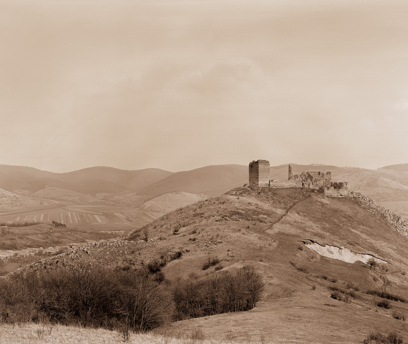 Fekete Zsolt a fentieknél sokkal markánsabban hozza be az idő dimenzióját a kiállításba. Két képpárt állított ki: mindkettőnek az egyik fele 1891-ből való, Veress Ferenc torockószentgyörgyi várromról készült fotóinak nyomata. S Fekete mindkettőhöz a saját 2003-as, az eredetit mindenben követő fotóit rendeli hozzá. Első ránézésre négy, majdnem azonos képet látunk, s a képpárok különösen egyformának tűnnek. Azonos méret, színvilág, fotós/nézői pozíció, ugyanaz a képkivágat. A tájban az idő múlásának és az emberi beavatkozásnak a nyomai csak hosszas játék után fejthetők fel: úgy nézzük a képeket, mint régen a ,,találd meg a különbségeket a két kép között’’ feladványokban – elemenként, pontonként hasonlítjuk öszsze a párokat. Csak itt nem segít, nem segíthet senki, hogy hány darab eltérést kell felfedeznünk. Az összevetés közben sokkal inkább a feloldódás a lényeg, a tényen való elgondolkodás: a pillantás ugyanaz is lehet, a technikai is lehet hasonló. De eltelt száz év – s ha akarunk, most már tudunk teremteni olyan látványt, amely anno vélhetőleg technikai csúcspontnak számított. Ha valami, akkor ez óriási változás. Az igazi beavatkozás, immár a rögzítés, látványalkotás menetébe. A fotográfia születése pillanatától kezdve szólt a látvány manipulálásáról is: ezekben a kiállított fotópárokban is (bár másképp, mint Koronczi vagy Samaraweerová művei esetében) ez az alapprobléma kerül exponálásra, megtoldva a médiumok s az emberi pillantás változásainak (s változatlanságainak) kérdéseivel.