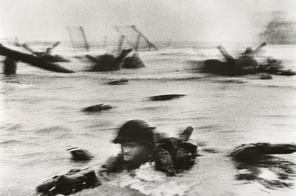 A szikár tények: Robert Capa két Contax és egy teleobjektíves Rolleiflex géppel szállt partra, a tervek és hite, tudomása szerint a „vörös E”-nek nevezett partszakaszon. Ám hajója, mint annyi más csapatszállító, a vihar miatt odább sodródott, s így valójában kissé távolabb, a „zöld E”-nek elnevezett partszakaszon szállt ki. A 106 felvétel közül – állítólag a technikus izgalmában elkövetett hibája miatt – megmaradt fotográfiák a normandiai partraszállás megrázó, hiteles, egyedülálló képi dokumentumai. A képek a LIFE magazinban 1944. június 19-én jelentek meg. Capa ezen felvételei ihlették Steven Spielberg Ryan közlegény megmentése című filmjének (1998) kezdő kockáit.