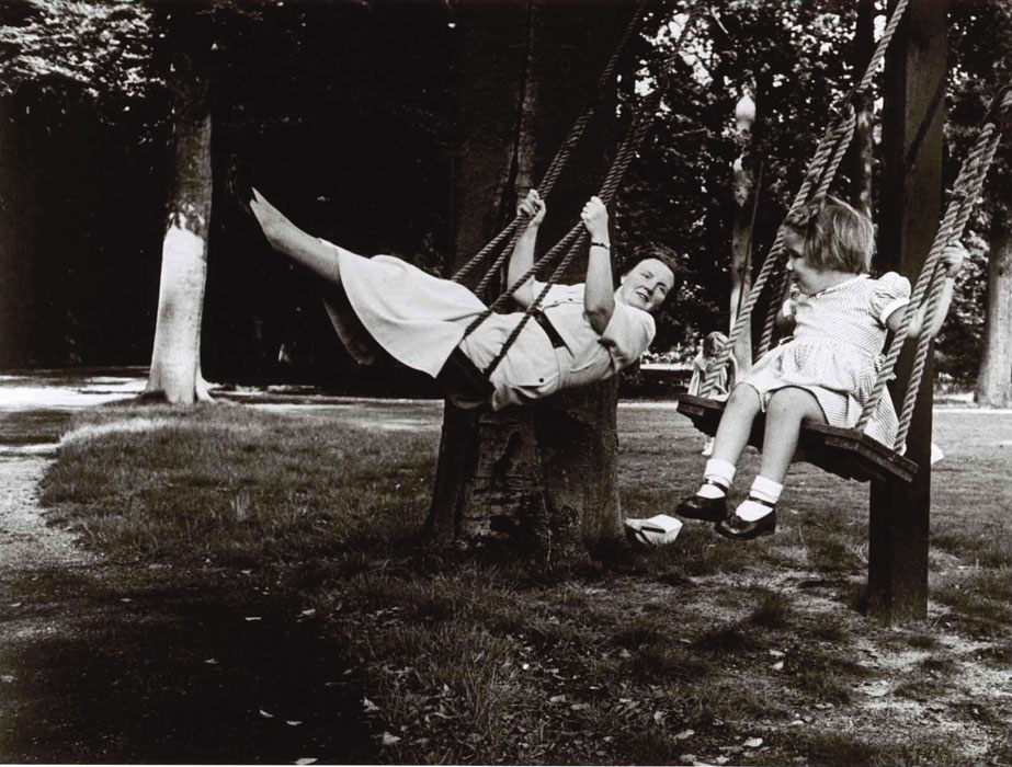 Julianna holland királynő kislányával a Soestdijk palota kertjében hintázik. Fényképezte: Robert Capa