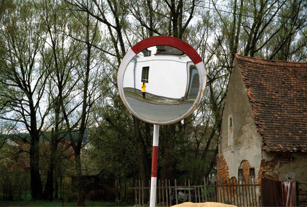 Maga a művész a tekintetnek végig az alanyi, cselekvő oldalán marad, kivéve a sorozat utolsó képét, amin önmagát fotózza: egy domború közlekedési tükörben látjuk, alig észrevehetően, esőkabátjától amúgy is eltakarva, eltorzult alakban, arcát a fényképezőgép rejti el. Torz tükörben mutatható be csak mindez: az emlékezet és az idő prizmáján törik meg minden tudás és látvány, és jön létre új tudás és új látvány. A művész pedig másodlagos a történetben, és semmivel sem stabilabb pont benne, mint bármi más. Jelenléte tény, de nem tudja átírni, megváltoztatni a kontextust, nem állít róla valamit –, csak létrehozza látható, kezelhető dimenzióját, éppen azzal, hogy nagyon finoman belesimul abba.23
