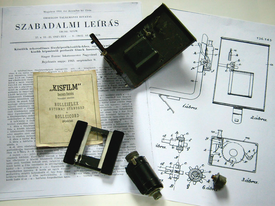 Singer Ferenc nagyváradi lakatosmester 1943. szeptember 9-én jelentett be 136.145-ös lajstromszámon magyar szabadalmat: „Készülék tekercsfilmes fényképezőgépekhez, saját képméretüknél kisebb képméretű perforált filmek használatához”. A vállalkozó kedvű, a külföldi termékeket kellő kritikával figyelő lakatos lényegében egy Rolleiflexhez, Rolleicordhoz használható kisfilmes adaptert szabadalmaztatott és gyártott. Ezeknek a tekercsfilmes fényképezőgépeknek a gépvázához egy L alakú hát- és alaplap csatlakozik. A tekercsfilm betöltésekor, a gép kinyitásakor ez 90 fokos szögben fel- és elhajlítható. A braunschweigi gyár egy, a képkapuba illeszthető maszkot és cserélhető hátlapot forgalmazott a perforált kisfilmnek a „Rolliban” történő használatához.