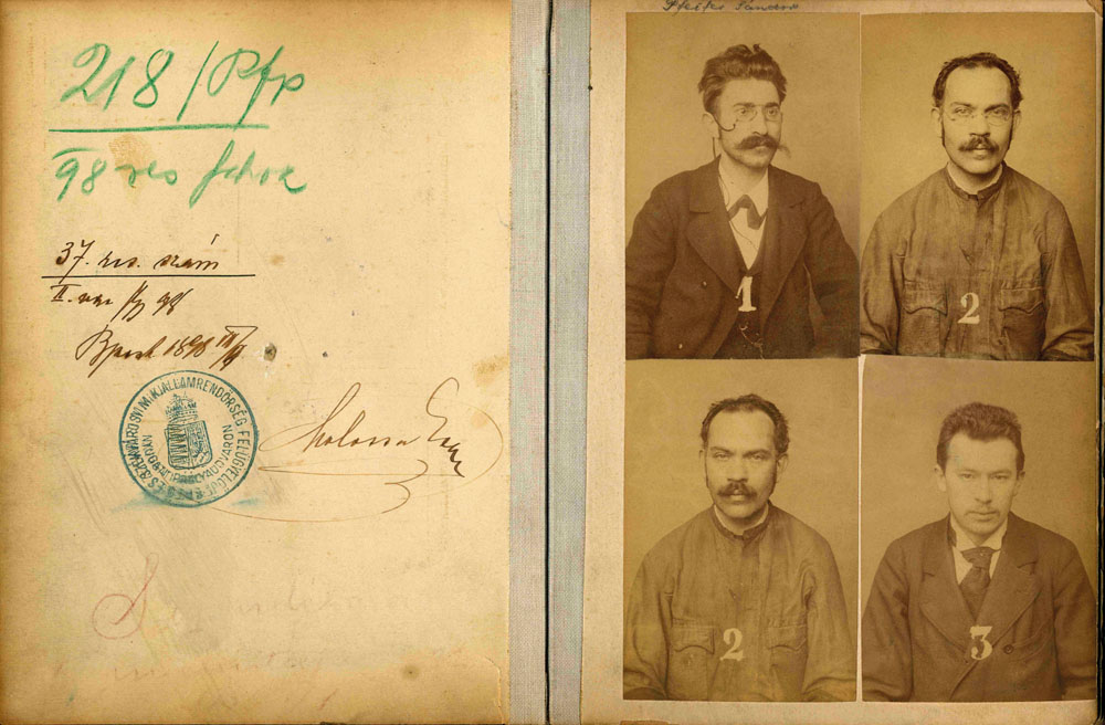 Egyik első gyűjteményismertető cikkében az ún. szocialisták albumát mutatta be, alapos levéltári és sajtóanyag alapján.3 Ez a fényképes bűnügyi nyilvántartás 77 szocialista agitátor megszámozott mellképét tartalmazta, 1898-ban állítottak össze belőlük 100 példányt, amelyeket megküldtek az ország rendőrkapitányságainak a századvégen megélénkült szocialista mozgalomban résztvevő személyek ellenőrzésének elősegítésére. Az albumok végén megtaláljuk a lefényképezettek sorszám szerinti és betűrendbe szedett névsorát, tevékenységük rövid összefoglalását.