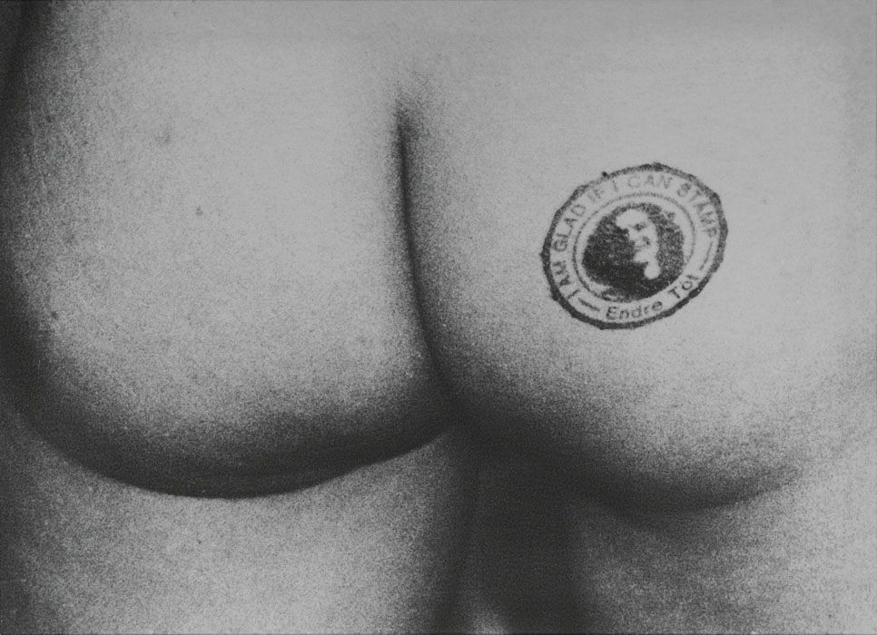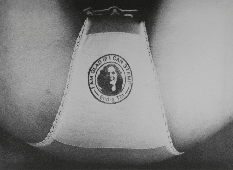 Amikor az egyik Londonban készült fotón Cosey Fanny Tutti meztelen fenekére Tót rápecsételi saját (Che Guevara emblematikus fotójától nem független) sziluettképét, akkor persze könnyen asszociálhatunk a Hrabal-könyvből Jiří Menzel által megfilmesített Szigorúan ellenőrzött vonatok ikonná lett bájos szerelmi játékára, ahol halál közeli állapotban Mása fenekét pecsételi a főhős – „nagyon speciális örömmel”. (Örülök, hogy pecsételhetek, 1976). Ugyanez a pecsét a performance másik stádiumában az alkotótárs bugyijának kényes pontján is feltűnik.