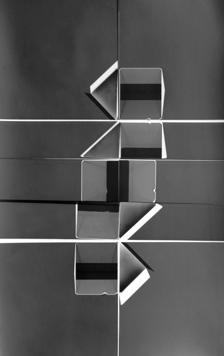 Aztán Várnagy Tiborral dolgoztam együtt nagyjából négy éven át. Vele is voltak közös fotogramjaink. 1991 körül kitaláltuk a Polaroid fotogram-technikát, amit én később is folytattam, fejlesztettem. Drégely Imre is dolgozott Polaroiddal, de ő sok expozícióból rakta össze a képet. Mi pedig egyetlen expozíciót csináltunk. Tiborral azt kísérleteztük ki, hogy a Polaroid 600-as filmet kioperáljuk a műanyag dobozából, és a kompozíciót egyben ráexponáljuk. Utána visszatesszük a dobozba, és már nem engedünk fényt a lapra, de expozíciót imitálunk, hogy beinduljon az előhívási folyamat. Nagy hibaszázalékkal kísérleteztünk, egy csomó problémát nem oldottunk meg, később, a kilencvenes évek végén ezért is nyúltam vissza ehhez a technikához. Csináltam egy nagyobb anyagot ezzel az időközben pontosra csiszolt technikával, lett belőle kiállítás, meg katalógus is, a Bolt Galériában, 1998-ban.