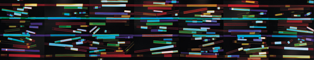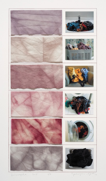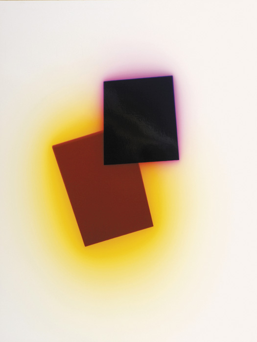 – Szintén alapvető dolgot, a színes nyersanyag „viselkedését” szerettem volna jobban megismerni, amikor 2007-ben színes fotogrammal kezdtem foglalkozni. Ebben a munkában a színek kialakulása érdekelt. A fotópapírt egy forgó alaplapra tettem, ezt a lapot pörgettem meg, és úgy exponáltam rá. Egy színes átlátszó fólia-kompozíciót tettem a nagyítógép negatívtartójába, így kaptam egy eredményt. Arra voltam kíváncsi, hogy mi mindenen múlik az, hogy milyen színek jönnek létre, hányféle színkompozíciót kapok a forgás, mint optikai színkeverés révén. Bár logikus, de kísérletezve sokkal izgalmasabb volt rájönni: hogy nemcsak a forgás időtartamától és sebességétől függenek a létrejövő színek, hanem attól is, hogy a forgásnak mi a centruma. Egyetlen kompozícióból is rengeteg változat tud létrejönni.