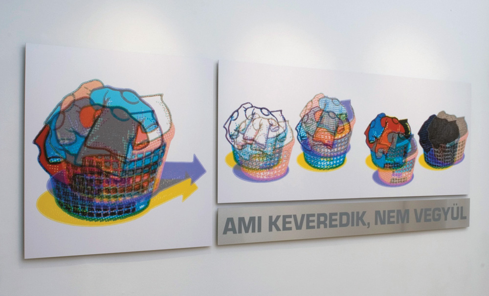 A grafikai munkák aztán egyre inkább visszaszorultak. Ez nem hirtelen történt, de nem lehetett nem észrevenni, hogy fokozatosan szűkül a piac, a grafikus szakma egymásnak panaszkodott, hogy egyre kevesebb a megbízás. Nekem a grafikai tervezés sosem jelentett szakmai identitást, amúgy is eluntam a szabadúszás magányát, akkor jelentkeztem a Képzőművészeti Egyetem Doktori Iskolájába. Három–négy éve pedig a tanításra helyeződött a megélhetés fókusza, a Képzőművészeti Egyetemen dolgozom, életem első állásában vagyok (leszámítva egy reklámcégnél való rövid art directorkodást, amit kényszervállalkozó külsősként végeztem). Ma már csak olyankor kapok tervezői felkéréseket, amikor a megrendelőnek nagyon arra van szüksége, amit jól tudok: a rendszerek kitalálását szeretem a legjobban, netes struktúrák tervezését is örömmel vállalom. A dizájn részét is megcsinálom, de abban nem vagyok igazán sokoldalú: csak magamat tudom hozni, ami kicsit nyers, lényegretörő. A vizuális finomságok a rendszereim alkalmazásával maguktól jönnek létre, tudatosan nem tudok és nem is szeretek finom és részletgazdag lenni.