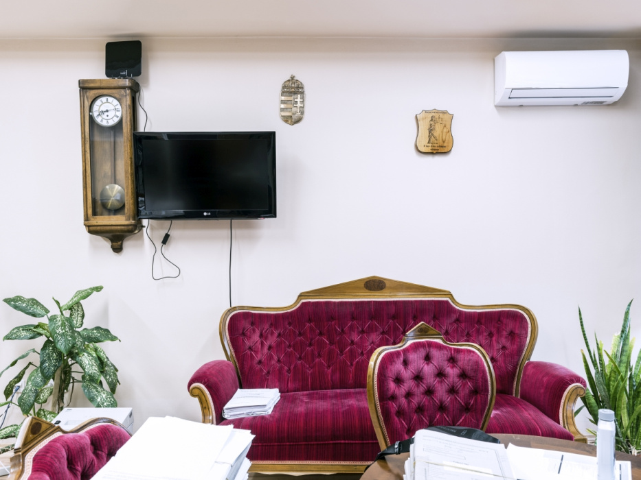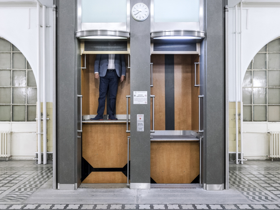Ez a másféle tekintet egyfelől az esendő-emberi jelenlétet rögzítő tekintet, mely Lakos sajátja: az olyan képeken, mint például a váci járásbíróságon készített dolgozóasztal csendélete, a dunaújvárosi járásbíróság vasalódeszkája, vagy kicsit nyilvánvalóbb módon a dabasi járásbíróságon köpenyét magára öltő bíró fotója, illetve a Pesti Központi Kerületi Bíróság „lefejező” elevátora jó példák erre. Ezek a humoros „jelenetek” meg-megtörik a merev, emberi jelenlétet nélkülöző, távollétbe írt képek analitikus sorát, a belsőépítészeti terek – magukban is izgalmas – monotonitását. Ez a magasztosságba csempészett hétköznapiság ugyanakkor fekete komédia, Magyarországon nem tudjuk anélkül szemlélni, hogy egy kis bacsói ízt ne éreznénk a szánkban.xi Így lepleződik le a szilárd eszme, a rend rendetlensége és hólyagossága, mely azután átnedvesíti a bíróságok belső, eldugott zeg-zugait is (málló vakolatok, iratokkal zsúfolásig telt „kupiszobák” stb.). A Spatia Iustitiæ kérdésfeltevése így tulajdonképpen az, vajon narancs-e már a narancs, avagy továbbra is az, ami volt? Tudniillik: citrom.