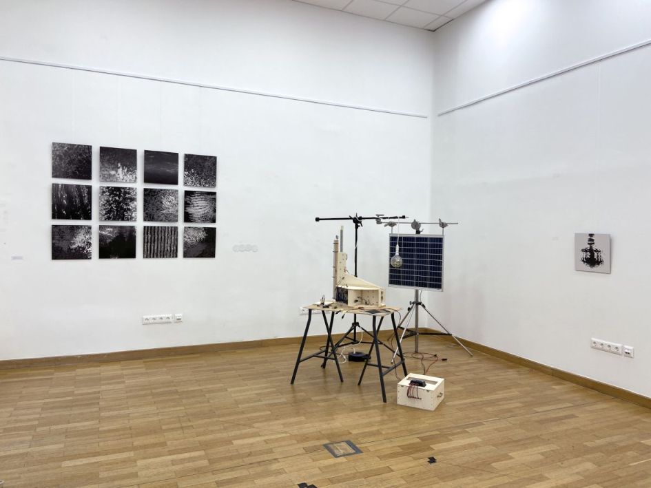 Kiss Richárd Camera Sonus című munkája a fényt iktatja ki a fényképezés folyamatából azzal, hogy egy olyan „kamerát” épít meg saját kezűleg, amely a visszavert ultrahang hullámait alakítja át képpé. A kirajzolódó pixelek tónusértékei gyakorlatilag a kamerától való távolság mértékének adatait vizualizálja. A fogaskerekeken gördülő szenzor mintegy vakon és taktilisan tapogatja le a tárgyak felületét, kiiktatva a színükből és a rájuk vetülő fényből adódó tónusokat. A szerkezet a kamerától 1 méter távolságra lévő 35 x 35 centiméteres teret térképezi fel, majd az összegyűjtött adatokat egy erre a célra megírt DIY-program fordítja át tónusértékké. A kapott képek csak megközelítőleg adják vissza az ábrázolt tárgyak formáját, de egyes címek segítenek beazonosítani a referenst, például a vasalót, a kést vagy a radiátort. A kevésbé jellegzetes formájú tárgyaknál, mint egy bokor képénél, már nonfiguratív monokróm kompozíciókká alakulnak át a képek, és némelyiknél az „absztrakt kép” elnevezés is tudatosan gátolja a felismerést. Waliczky Tamás Képzelt kamerák1 című alkotása juthat eszünkbe, és az a kortárs felismerés, hogy a látványon alapuló világunk nem ad kielégítő tudást a szemlélő számára. Gondoljunk például a „BeReal” mozgalom alapötletére, amely valóságosabbnak hirdeti magát azáltal, hogy a telefon két ellentétes oldali kamerájával nagyobb teret tud lefedni, mint a hagyományos fényképek, vagy eszünkbe juthatnak Thomas Ruffnak a képek valóságát megkérdőjelező sorozatai (Jpg2, Cassini3, Ma.r.s4).