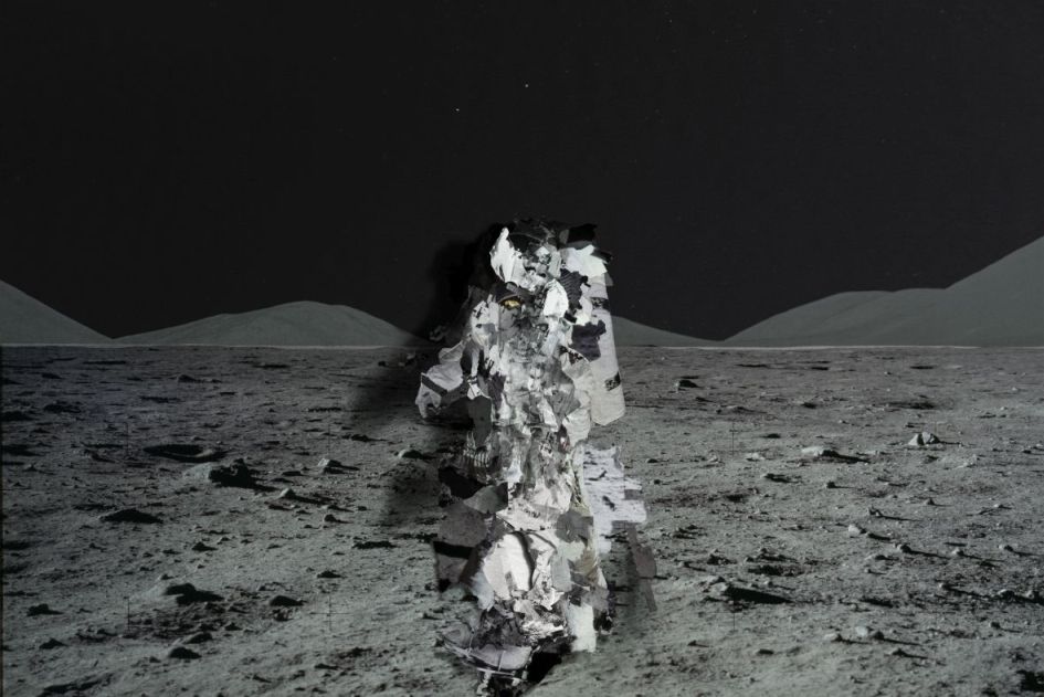 Kovács Edmond Apollo 18 című diplomamunkája szintén transzformációval foglalkozik, de nem a hang és a kép, hanem a sík kétdimenziós terének és a virtuális háromdimenziós térnek az átjárhatóságát vizsgálja. A kutatásának fókuszába pedig a holdra szállás ikonikus képeit használja fel, amely nemcsak azért releváns választás, mert szimbolikusan „nagy lépés az emberiségnek”, hanem mert kezdetektől megkérdőjelezték a képek hitelességét, azzal vádolva a NASA-t, hogy a hidegháborús kontextusban és az űr meghódításáért vívott harcban félrevezető, megrendezett képeket publikált. A mű a rekonstruálhatóságra is rákérdez: vajon a látványt töredékesen visszaadó fényképből újraalkotható-e a holdbéli táj, illetve megismerhető-e a holdra szállás menete? David Clearbout művei juthatnak eszünkbe (King5 és Highway wreck6), amelyekben álló fényképek terét rekonstruálja és járja körbe, megmutatva a kép terén kívül zajló eseményeket és a fotográfiák tágabb kontextusát.
