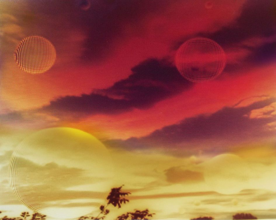 Zagyvai Sári Holdfogyatkozás című fotómontázsát 2019-ben a művésztelep résztvevői által közösen megélt égijelenség ihlette. A szigetlakók az egyik partról a másikra vonultak át éjszaka, hogy jobban lássák az égitestek játékát. A digitális montázst a művész a képernyőről úgy nagyította le, hogy a képernyő került a negatív helyére a nagyítógépbe. Így hibrid kép jött létre analóg és digitális rétegekből. A keretezést pedig úgy oldotta meg, hogy a kép háttere tükör, amelyben ugyanúgy nem látjuk magunkat, ahogyan holdfogyatkozáskor a Föld a Nap és a Hold közé ékelődik.