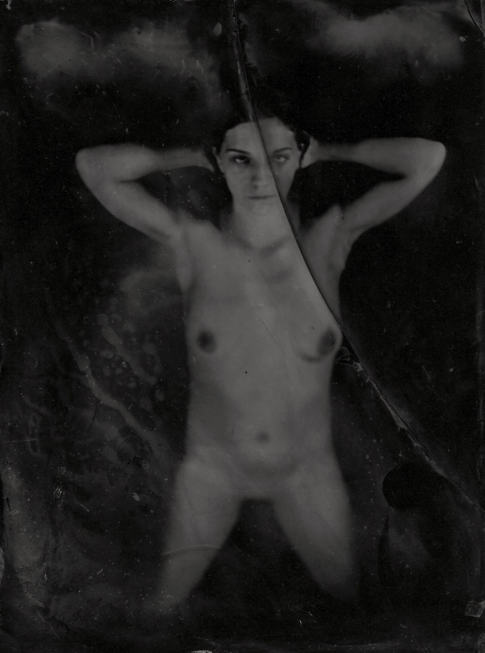 Gálos László szintén középgenerációs alkotó, aki polgári szakmája szerint boncmester, de az elmúlt évtizedben a nedves kollódiumos eljárással dolgozó közösségnek is meghatározó tagja lett. Számos önálló kiállítása volt itthon és külföldön is, a legkülönbözőbb koncepciók mentén, de a technikaválasztása egységes: szinte kizárólag nedves kollódiumra dolgozik. Tudatosan építi pályáját, számos pályázattal ért el sikereket, többször megnyerte az NKA alkotói ösztöndíját, rezidenciaprogramon is részt vett a Kimonos Art Centerben26. A fotográfián belül elsősorban az aktfotózás és az emberi test foglalkoztatja, ebben a kategóriában többször díjazott alkotó. Foglalkozik a kollódiumos fotók installációs oldalú újraértelmezésével is, előadóművészeti kollaborációkban is részt vesz. Különösen a kortárs tánc és a fotóhoz köthető performanszok érdeklik27, az L1 Egyesület tagja28.
