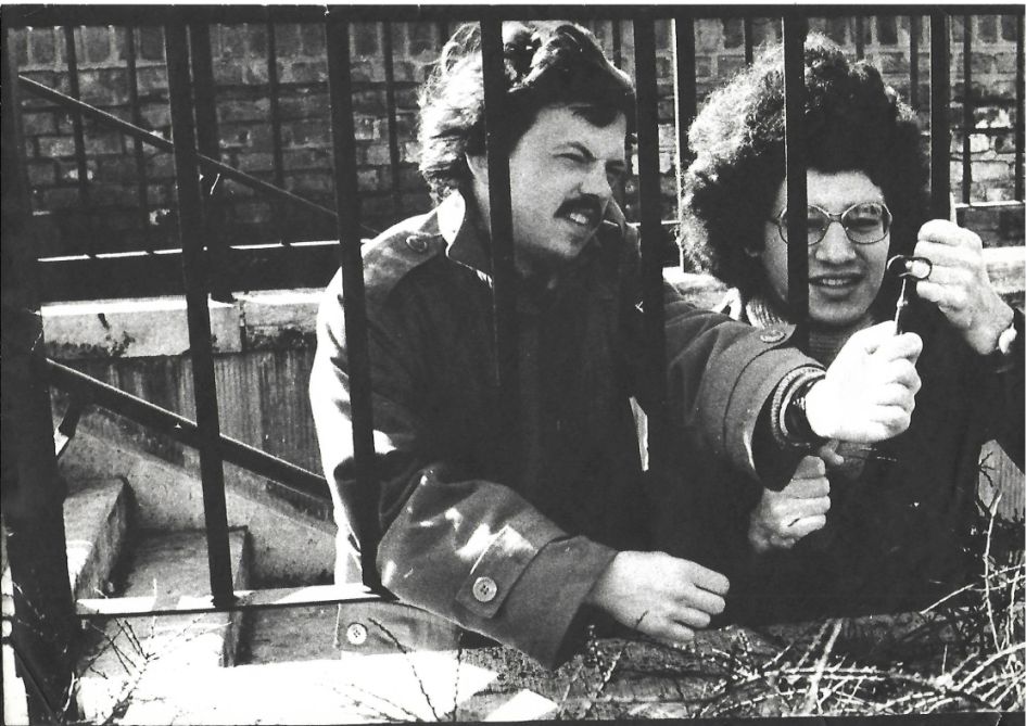 Sarkantyú Mihály az érettségit követően egy évig nyomdatechnikai ismereteket szerzett, kéziszedő tanuló volt a Ságvári Endre Nyomdaipari Szakmunkásképző Intézetben. 1972-ben előfelvételt13 nyert az ELTE Bölcsészettudományi Karának Magyar-Könyvtár Szakára, de tanulmányai megkezdése előtt teljesítette tizenegy hónapos sorkatonai kötelezettségét Hódmezővásárhelyen. A laktanyában készült felvételek, a kor előírásainak megfelelően illegális fényképeknek minősültek. A laktanyai létet dokumentáló néhány fotóból ‒ amelyet ő készített vagy amely róla készült ‒, állította össze fia a már említett kiállítás archív emlékanyagát. Ezeket Illés is és én is Sarkantyu Judit családi archívumában láthattuk, foghattuk a kezünkben. Sarkantyu Illés nemcsak a helyszínen és az egykori katonatársak visszaemlékezéseiből építette fel a monumentális emlékezet stációit, de későbbi egyetemi évek alatt megismert barátja Gábor György filozófus, vallástörténész is ezzel a történetszállal, vagyis Mihály katonasága során szerzett élményagával kezdte róla a visszaemlékezését. Sarkantyú Mihály 1974-ben kezdte meg egyetemi tanulmányait, ettől az időtől kezdve, hosszú évekig elválaszthatatlan barátja Gábor György lett, aki az egész Sarkantyu-család számára is fontos igazodási ponttá vált. Tőle tudom, hogy Mihály róla készített felvétele szolgált Simonnak mintául, aki Gábor Györgyről négy portrét is festett, amelyek közül kettő külföldi és kettő magyarországi magángyűjteményben található. Egy év után mindketten felvehették a választott és vágyott szakjukat: György a filozófiát, míg Mihály a művészettörténetet. Évfolyamtársai voltak későbbi felesége, Basics Beatrix, Bartholy Eszter, Bognár Tünde, Hadik András, Lővei Pál, Mentényi Klára, Sümegi György és Turai Hedvig. Egyetemi tanulmányai alatt figyelmét a kortárs képzőművészet felé is fordította, ezt bizonyítják a Böröcz András tulajdonában lévő felvételek, melyek legkorábbi, pontosan datálható darabjai 1977-ből származnak. Az első fotósorozat egy budafoki helyspecifikus installáció építését dokumentálja, Szirtes János és Bori Bálint főiskolai hallgatók szerepelnek rajta. Édesapja, Sarkantyu Simon festészeti osztálya révén ismerkedett meg Böröcz-cel, Révész Lászlóval, Roskó Gáborral, Szirtes Jánossal, Gábor Áronnal, több alkalommal is részt vett a nyári szigligeti művésztelepi gyakorlatukon, ahol nemcsak dokumentálta performanszaikat, de Böröcz visszaemlékezései szerint felszerelését is használták, és hallgatóként kértek és kaptak tőle szakmai tanácsot is. Böröcz András ugyanakkor megemlíti, hogy Simon, a tanáruk mellett Mentényi Klára művészettörténész is fontos összekötő kapocs volt közöttük. Szőke Annamária precíz gyűjtésein alapuló publikációjára, valamint Böröcz András ezzel megegyező közlésére, illetve datálására hagyatkozva kitűnik, hogy Sarkantyú 1977 és 1982 között egészen biztosan aktívan dokumentálta az Indigo Csoporthoz köthető művészek tevékenységét.14 Mondhatjuk úgy is, hogy Sarkantyú Mihály háttere és addigi pályája, apja műterme ahol felnőtt, és amelyet később ő is alkalmanként használt, fotós és filmes eszközei, házi laborja, amely szintén rendelkezésére állt, kiváló tanárai a Kisképzőben, kortársai és barátai, apja főiskolai osztálya és a saját területén, saját jogán érvényesülő művészettörténész ismeretei, szerteágazó érdeklődési köre mind feljogosították arra, hogy jelen legyen, hogy dokumentáljon, hogy résztvevő megfigyelővé válhasson.