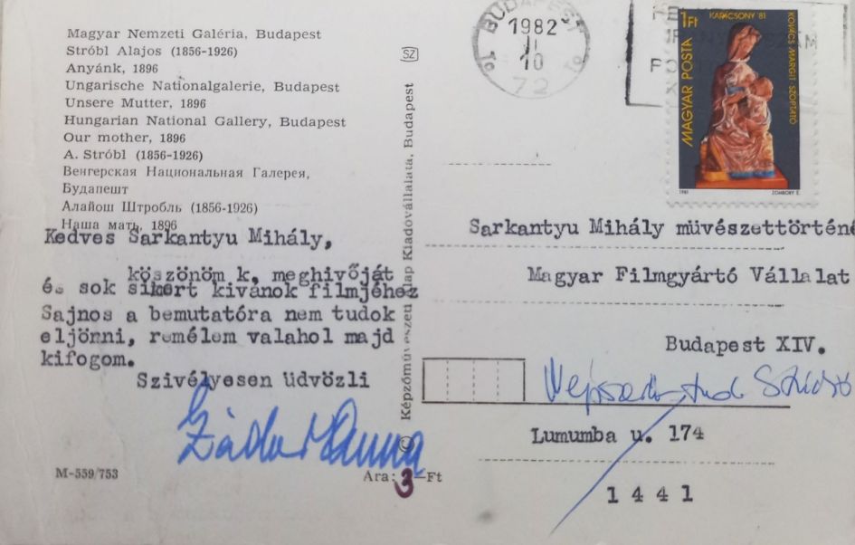 - 15. A Budapesten, 1979. április 14-én, keltezett, kétoldalas, gépelt életrajzot Sarkantyu Judit családi archívumában tekinthettem meg. Ebben kitér családi állapotára is: „Feleségem Basics Beatrix egyetemi hallgató (ELTE, BTK művészettörténet-angol, V. évf.) […]", de összegyűjti díjnyertes amatőrfilmjeit, Tudományos Diákköri díjait és publikációs listáját is. ↑